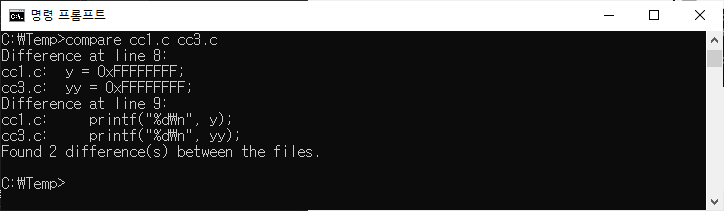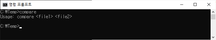 명령 프롬프트(command line)에서 두 개의 파일명을 받고, 해당 파일을 읽어서 그 내용을 비교합니다.