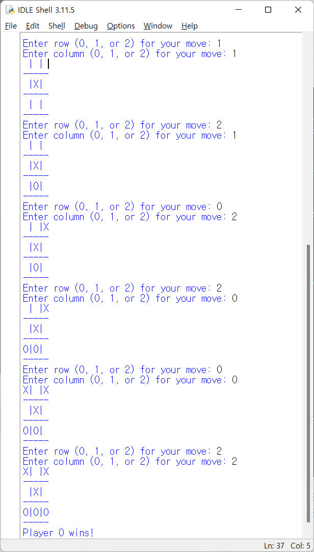 col = int(input("Enter column (0, 1, or 2) for your move: "))