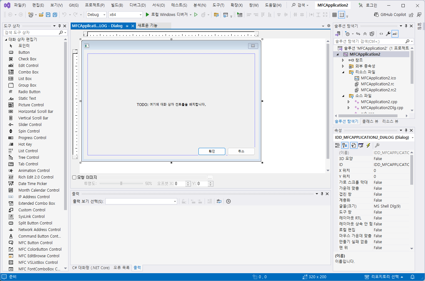 - MFC 앱을 만들기 위해서는 Microsoft Visual Studio 개발 도구가 설치되어 있어야 합니다.